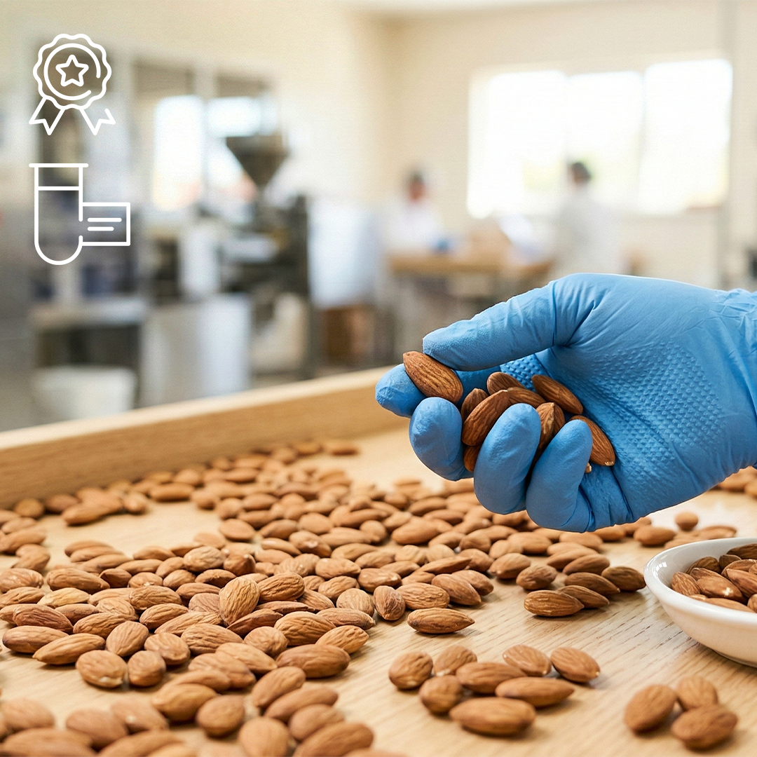 Staranna selekcja surowców: Współpracujemy tylko ze sprawdzonymi dostawcami. Niezależnie czy to migdały, nerkowce czy mąki – wybieramy partie o najwyższych parametrach jakościowych.