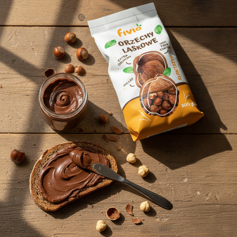 ✅ Wysoka zawartość błonnika: Błonnik zawarty w orzechach laskowych poprawia pracę układu pokarmowego, zapewnia uczucie sytości i pomaga w utrzymaniu prawidłowej wagi.