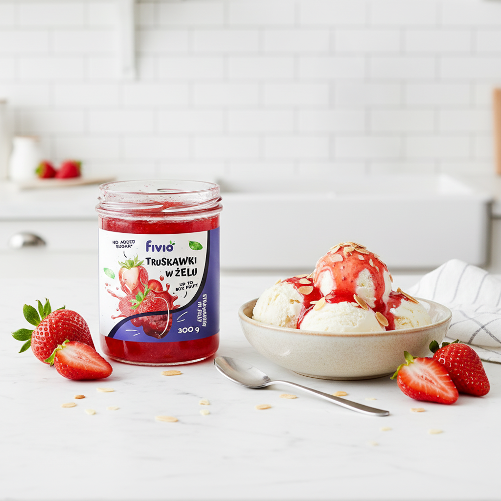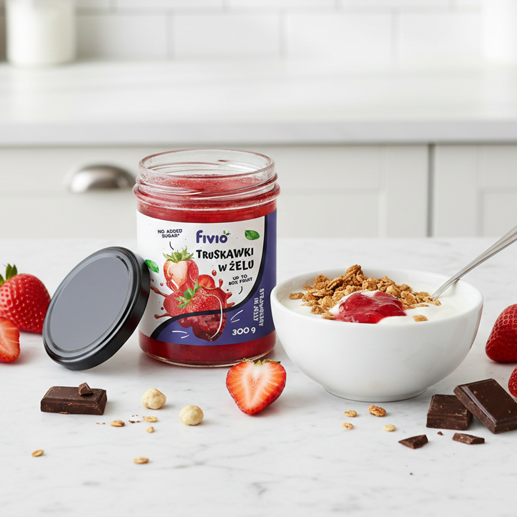 Truskawki w żelu fivio to owocowy produkt o wysokiej zawartości truskawek zanurzonych w delikatnym, słodkim żelu. Charakteryzuje się naturalnym, świeżym smakiem owoców, który doskonale komponuje się z deserami, śniadaniami i wypiekami. Dzięki zastosowaniu substancji słodzących zamiast cukru stanowi wygodną alternatywę dla tradycyjnych dodatków owocowych.